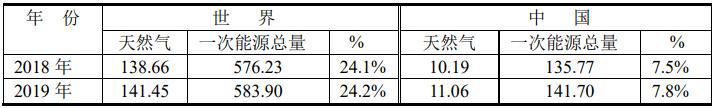 2019年世界天然氣消費占全球一次能源消費的24.2%,但中國僅占7.8%,仍然遠低于世界水平。