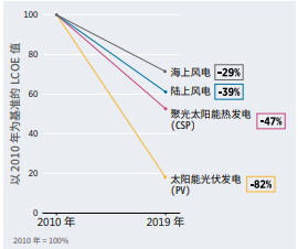 再生能源發(fā)電技術從2010年起成本不斷下降