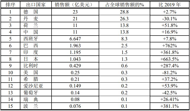 在上述15家全球供應商中,有12個國家從2019年至2020年的風力發(fā)電出口中獲得了更大的收入。從2019年到2020年,瑞典(增長26.41%)、巴西(增長762%)、日本(增長663.5%)、波蘭(增長381.1%)、印度(增長361.8%)和比利時(增長287.4%)的增長最為強勁。