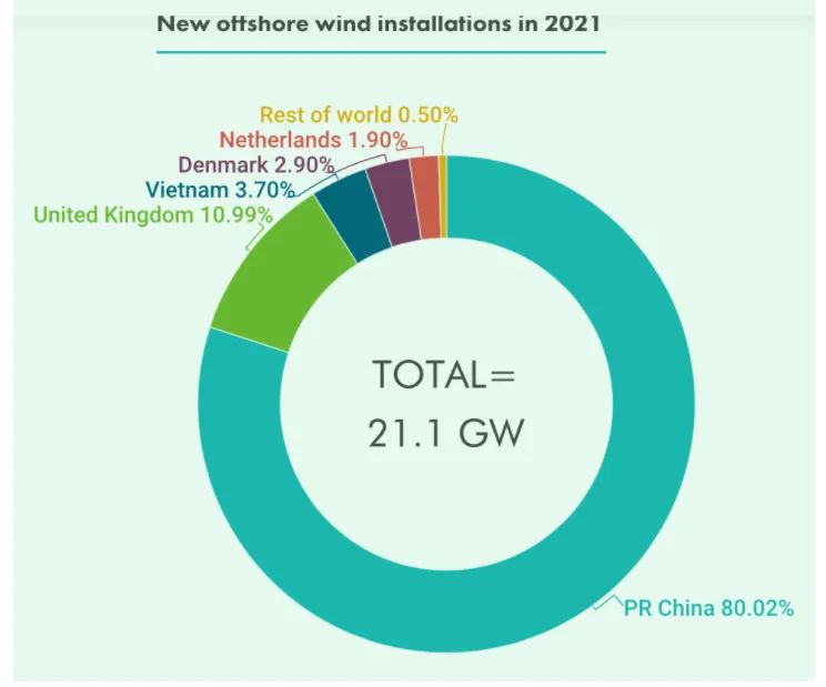 2021年全球海上風(fēng)電新增裝機(jī)21.1GW,具體國(guó)家排名如下: