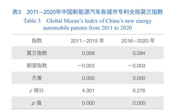 因此,由上述分析可知,新能源汽車企業(yè)是當(dāng)前中國進行新能源汽車創(chuàng)新活動的主體。但一方面中國新能源汽車產(chǎn)業(yè)發(fā)展仍處于初期,并未形成相對健全的產(chǎn)業(yè)體系;另一方面則是新能源汽車的研發(fā)有較高的技術(shù)門檻,企業(yè)間的合作難以開展。中國新能源汽車產(chǎn)業(yè)創(chuàng)新網(wǎng)絡(luò)的結(jié)網(wǎng)比例及其下降趨勢也表示,大部分新能源汽車的研發(fā)基本由企業(yè)獨立完成。這使得中國新能源汽車在2011—2020年并未產(chǎn)生顯著的溢出效應(yīng),僅在長江三角洲城市群地區(qū)有一定的創(chuàng)新活動的集聚現(xiàn)象。