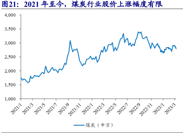 股價(jià)僅限盈利驅(qū)動(dòng),且市場(chǎng)認(rèn)為高盈利不可持續(xù)。2021-2022年,煤炭板塊較年初分別上漲10.9%和43.6%,2022年12月31日,煤炭板塊較2021年1月4日上漲51.8%。2021年,煤炭上市公司歸母凈利1600億元,同比增長(zhǎng)75.6%,2022年前三季度,煤炭上市公司歸母凈利2058億元,同比增長(zhǎng)71.3%。煤炭板塊上漲僅限盈利驅(qū)動(dòng),估值尚未提升,且煤炭板塊股價(jià)上漲幅度遠(yuǎn)不及煤企利潤(rùn)增長(zhǎng)幅度,市場(chǎng)認(rèn)為煤企高盈利不可持續(xù)。2021-2022年,煤炭板塊股價(jià)上漲主要來(lái)自煤企業(yè)績(jī)?cè)鲩L(zhǎng),且股價(jià)上漲幅度遠(yuǎn)不及業(yè)績(jī)?cè)鲩L(zhǎng)幅度,這使煤炭板塊估值持續(xù)低位。但我們也應(yīng)該看到,經(jīng)過(guò)多年的發(fā)展,煤炭行業(yè)已不再是高污染的產(chǎn)能過(guò)剩行業(yè),能源安全背景下,煤炭作為我國(guó)主體能源在短期內(nèi)不會(huì)改變。而“雙碳”政策也限制了煤炭的產(chǎn)能周期,正因?yàn)槊禾烤哂休^高的碳排放,未來(lái)產(chǎn)能將變的更為稀缺,煤炭盈利有望維持在高水平,煤炭?jī)r(jià)值或?qū)⒈恢鸩桨l(fā)現(xiàn)。