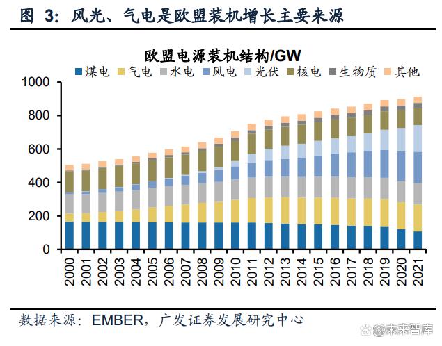 從裝機(jī)變化趨勢(shì)來(lái)看:歐盟煤電機(jī)組陸續(xù)關(guān)停,風(fēng)光、氣電是裝機(jī)增長(zhǎng)主要來(lái)源。