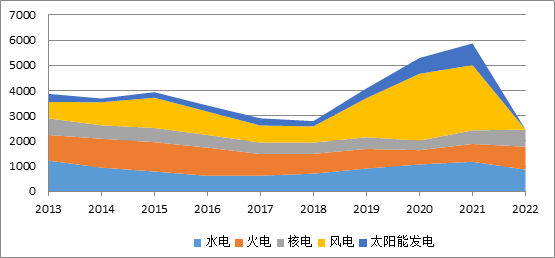 圖18 2013—2022年不同電源投資情況(單位:億元)