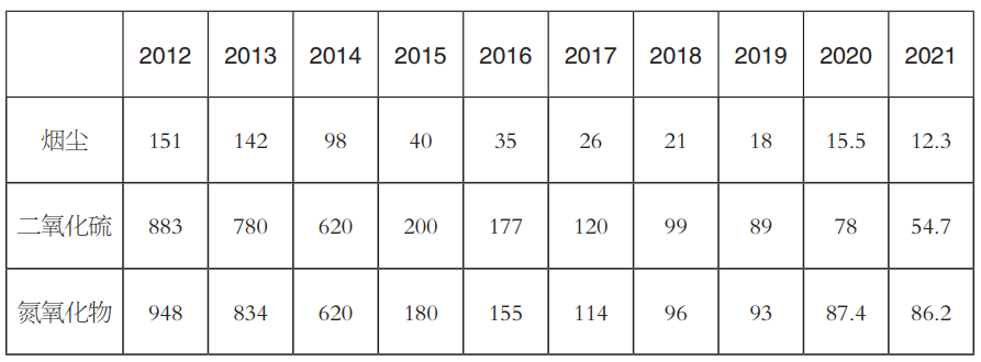 表10 2012—2021年電力行業(yè)排放總量情況(單位:萬(wàn)噸)
