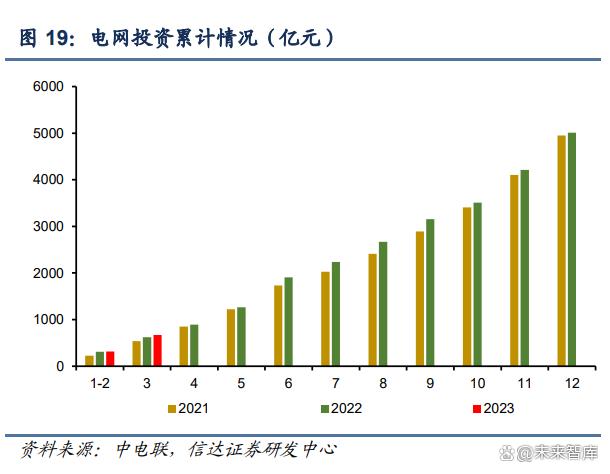 電網(wǎng)投資情況方面:1-3 月電網(wǎng)工程完成投資 668 億元,同比增長 7.5%。2022 年電網(wǎng)工程 審批及建設(shè)受疫情影響,開工及完成不及預(yù)期。2023 年開年電網(wǎng)投資開始發(fā)力,有望在今 年保持同比高增速。