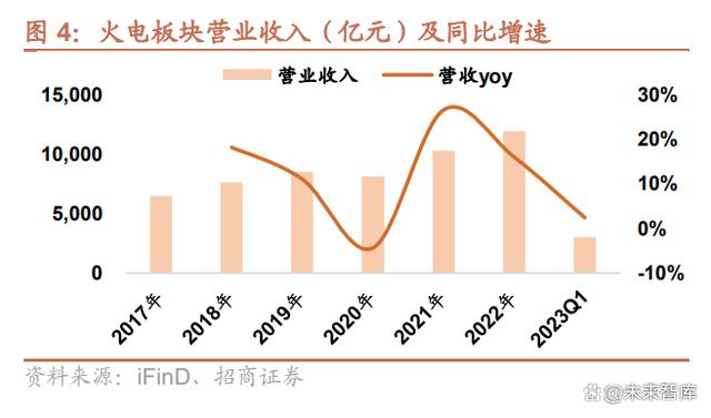 個(gè)股方面,2022 年火電板塊營收前三的企業(yè)分別為華能國際、國電電力、大唐發(fā)電,歸母凈利潤前三的企業(yè)分 別為國電電力、陜西能源、深圳能源。2023Q1 火電板塊營收前三的企業(yè)分別為華能國際、國電電力、華電國際, 歸母凈利潤前三的企業(yè)分別為華能國際、華電國際、浙能電力。