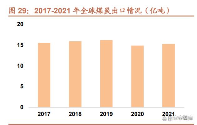 地緣政治局勢變化影響能源市場,全球動力煤價格高企抬升中國動力煤進(jìn)口成本。受疫情影響,2020 年以來全球煤 炭出口數(shù)量持續(xù)下降,2020 年全球煤炭出口總量為 14.86 億噸,較 2019 年下降 8.3%,2021 年回升至 15.27 億噸, 但仍低于 2019 年水平。而地緣政治局勢的惡化則進(jìn)一步影響了煤炭市場,2022 年動力煤供應(yīng)進(jìn)一步惡化。2022 年 1 月,印尼政府為緩解國內(nèi)電廠缺煤形勢宣布 1 月內(nèi)禁止出口煤炭,引發(fā)國際煤炭市場震蕩,海運(yùn)煤市場供給大幅減 少,煤價開啟上行之路。2022 年 2 月,俄烏沖突爆發(fā),美國與歐盟對俄羅斯實行能源禁運(yùn),俄羅斯 3 月以來煤炭、 石油、天然氣出口量均大幅下降,煤炭出口的下降直接沖擊了全球動力煤市場,而天然氣出口的下降使得歐洲出現(xiàn)較 大程度的能源短缺,歐洲多國被迫重拾其他替代能源,煤電也包括在內(nèi),根據(jù)國際能源署的統(tǒng)計,2022 年歐洲燃煤 發(fā)電量同比增長 6%,歐洲能源結(jié)構(gòu)的變化加劇了全球煤炭供給的短缺。2022 年中國的動力煤進(jìn)口成本飆升。