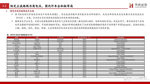 快充主流路線為高電壓,國內外車企積極布局