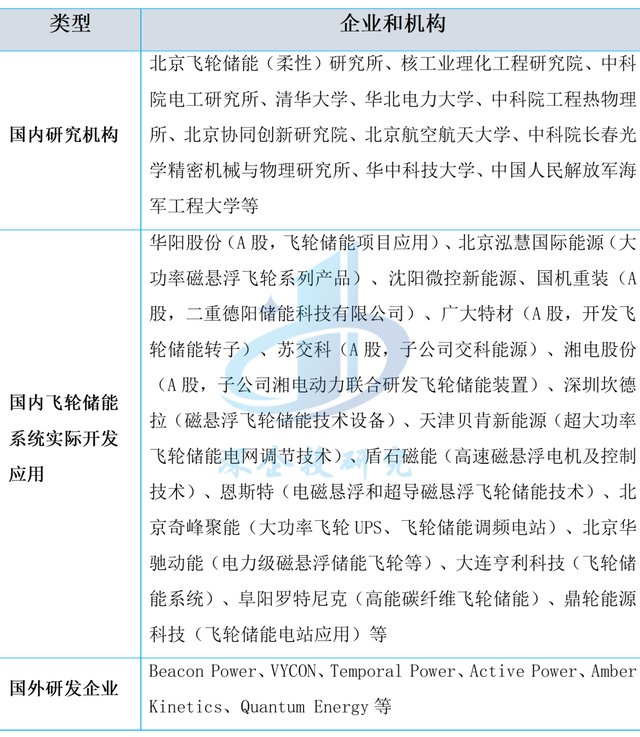 表3 飛輪儲能系統(tǒng)和裝置開發(fā)應(yīng)用重點機構(gòu)