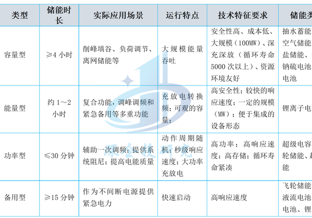 按照時長要求的不同,儲能的應(yīng)用場景可分為容量型(≥4小時)、能量型(約1~2小時)、功率型(≤30分鐘)和備用型(≥15分鐘)四類,對應(yīng)的應(yīng)用場景如下表所示。