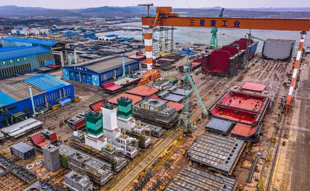 某大型液化天然氣船段生產(chǎn)作業(yè)區(qū)(無(wú)人機(jī)照片)。李信君攝(新華社)