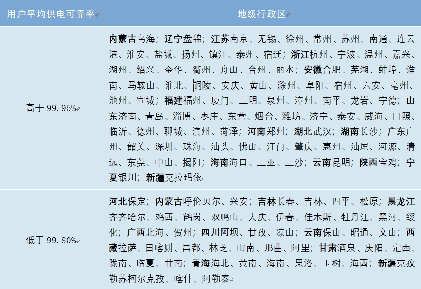 2023年,全國(guó)供電可靠性仍然呈現(xiàn)不均衡態(tài)勢(shì),333個(gè)地級(jí)行政區(qū)中,91個(gè)的平均供電可靠率高于99.95%,47個(gè)地級(jí)行政區(qū)的用戶平均供電可靠率低于99.80%。