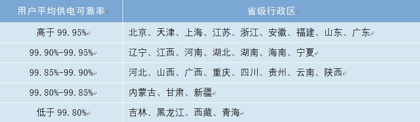 表1 2023年省級(jí)行政區(qū)用戶平均供電可靠率分布情況