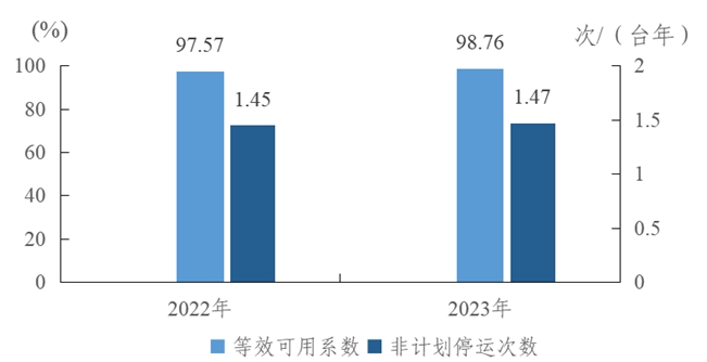 圖2 2022-2023年燃煤機(jī)組主要運(yùn)行可靠性指標(biāo)