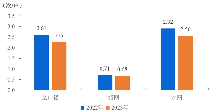 全國(guó)用戶平均停電頻率2.30次/戶,同比減少0.31次/戶,其中,城網(wǎng)0.68次/戶,農(nóng)網(wǎng)2.56次/戶。城網(wǎng)地區(qū)與農(nóng)網(wǎng)地區(qū)相差1.88次/戶。