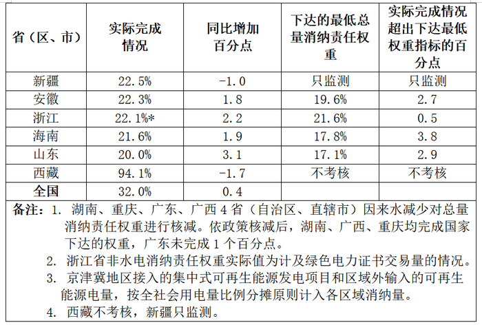 (一)可再生能源電力總量消納責任權重完成情況