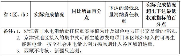 二、各省(區(qū)、市)可再生能源電力消納責任權重完成情況