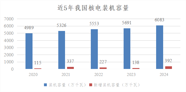 2024年是我國(guó)核電發(fā)展具有里程碑的一年,全年新核準(zhǔn)11臺(tái)核電機(jī)組,為歷年核準(zhǔn)數(shù)量之最,連續(xù)3年核準(zhǔn)機(jī)組數(shù)量超過(guò)10臺(tái);投入運(yùn)行核電機(jī)組2臺(tái),新增額定裝機(jī)規(guī)模240萬(wàn)千瓦;在運(yùn)、在建和核準(zhǔn)待建核電機(jī)組共有102臺(tái),總裝機(jī)容量1.13億千瓦,連續(xù)2年位居全球首位。截至當(dāng)年末,全國(guó)運(yùn)行核電機(jī)組共有57臺(tái)(不含臺(tái)灣地區(qū)),額定裝機(jī)容量為5943.17萬(wàn)千瓦。全年累計(jì)核電發(fā)電量為4451.75億千瓦時(shí),比上年同期上升了2.72%,占全國(guó)累計(jì)發(fā)電量的4.73%,超過(guò)太陽(yáng)能發(fā)電量,排在第4位。由此可見(jiàn),我國(guó)核電裝機(jī)占全國(guó)總裝機(jī)的比例不到2%,但發(fā)出的電量接近全國(guó)總發(fā)電量的5%。年設(shè)備利用小時(shí)數(shù)為7805.74小時(shí),平均機(jī)組能力因子為90.26%。