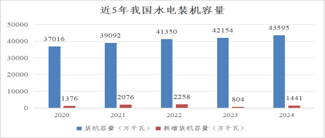 水電作為常規(guī)電力中唯一的可再生能源,2024年總體呈現(xiàn)出穩(wěn)定增長(zhǎng)的發(fā)展趨勢(shì),并且在全球范圍內(nèi)保持領(lǐng)先地位。截至當(dāng)年底,我國(guó)水電總裝機(jī)容量達(dá)到4.36億千瓦,占我國(guó)電力總裝機(jī)的13.02%,較2023年新增裝機(jī)容量1378萬(wàn)千瓦,同比增長(zhǎng)3.2%,其中,常規(guī)水電裝機(jī)規(guī)模3.77億千瓦、同比增加625萬(wàn)千瓦;抽水蓄能裝機(jī)規(guī)模5869萬(wàn)千瓦、同比增加753萬(wàn)千瓦。全年水電發(fā)電量14239億千瓦時(shí),占發(fā)電總量的13.53%,僅次于火電,排在第2位;規(guī)模以上水電年平均利用小時(shí)數(shù)為3349小時(shí)。在雙碳目標(biāo)和新能源快速發(fā)展的大背景下,水電以其穩(wěn)定、清潔的特點(diǎn),成為我國(guó)清潔能源供應(yīng)的可靠保證。