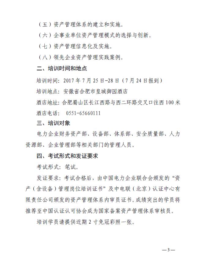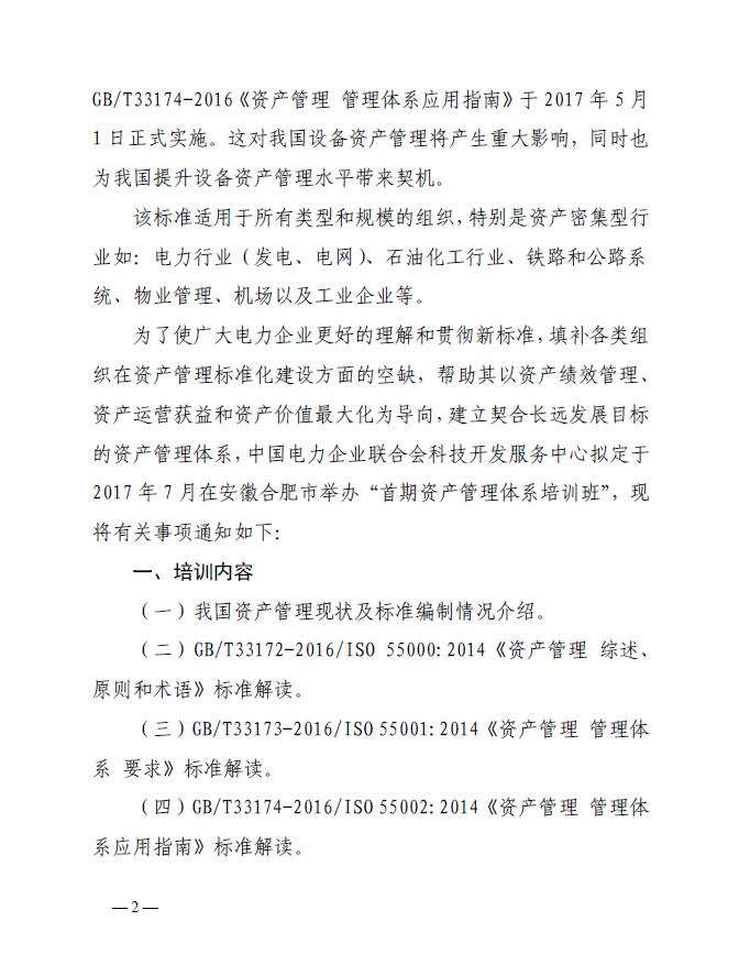 關(guān)于舉辦首期電力行業(yè)資產(chǎn)管理體系專題培訓(xùn)班的通知