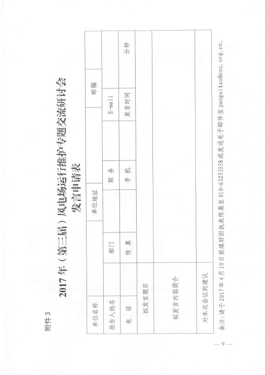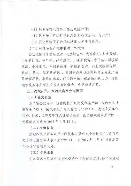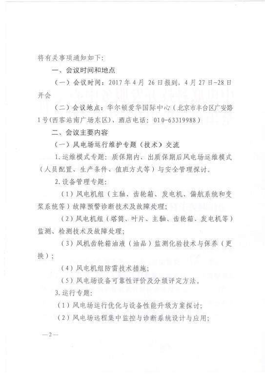關于召開2017年(第三屆)風電場運行維護專題交流研討會的通知