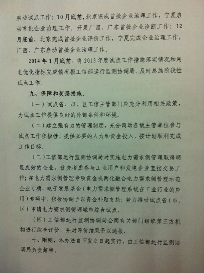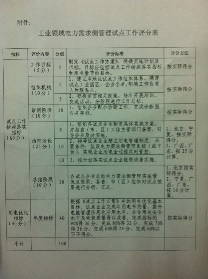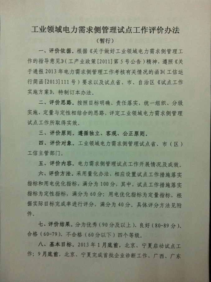 工業(yè)領(lǐng)域電力需求側(cè)管理試點工作評價辦法(暫行)